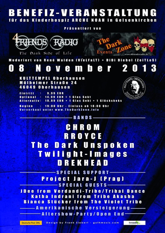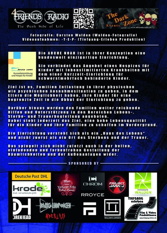 zu gunsten des Kinderhozpiz Arche Noah in Gelsenkirchen findet am 8.November 2013 im KULTTEMPEL Oberhausen statt.